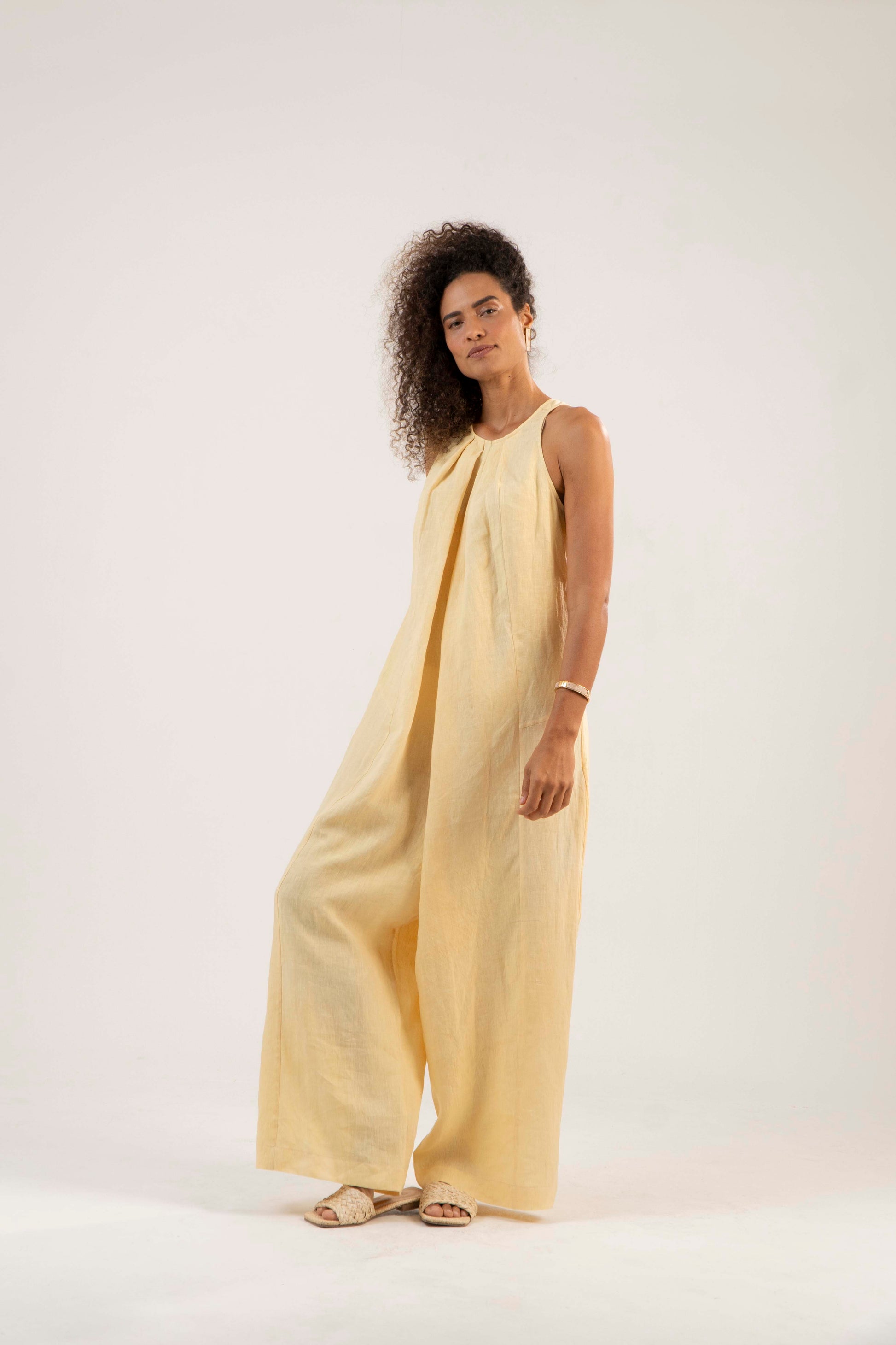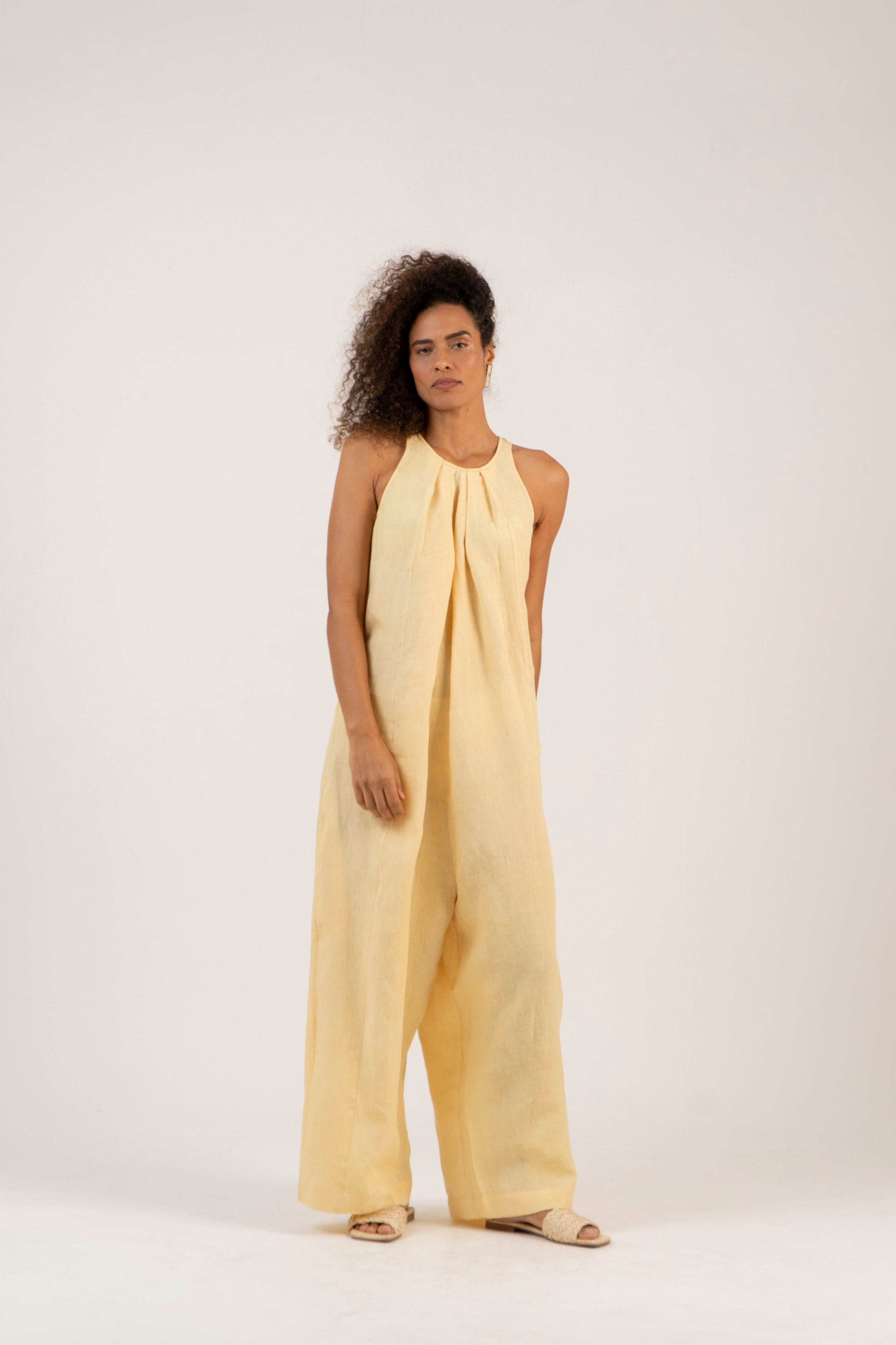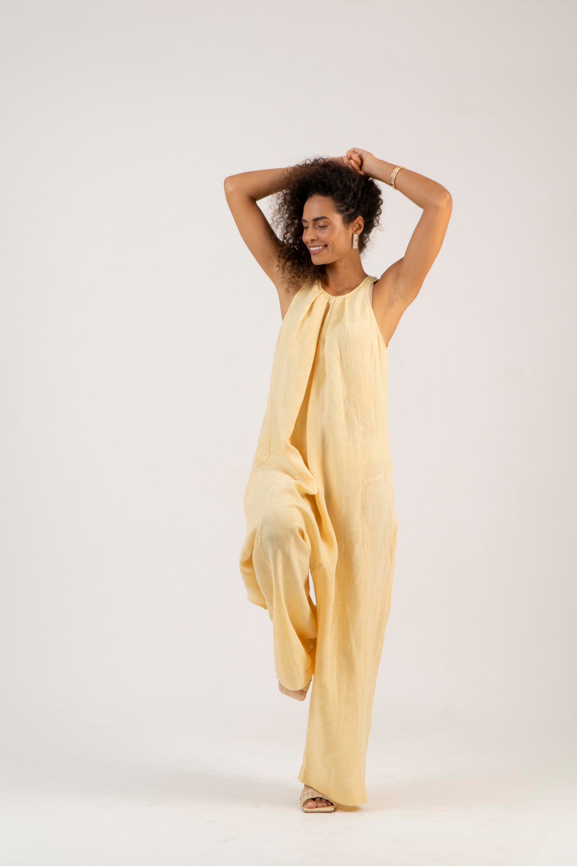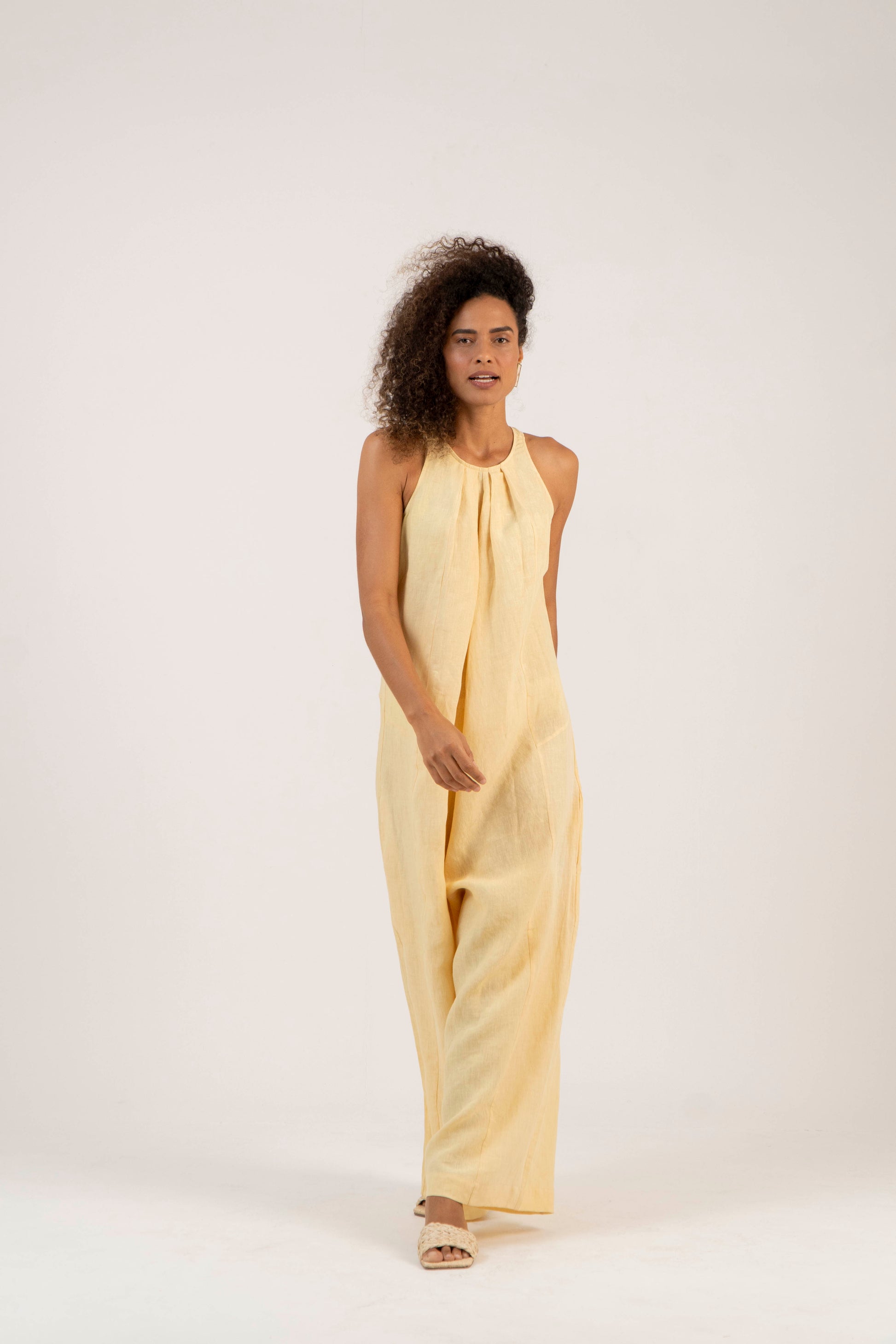 Macacão Longo Amarelo Claro Tula - Linho Orgânico