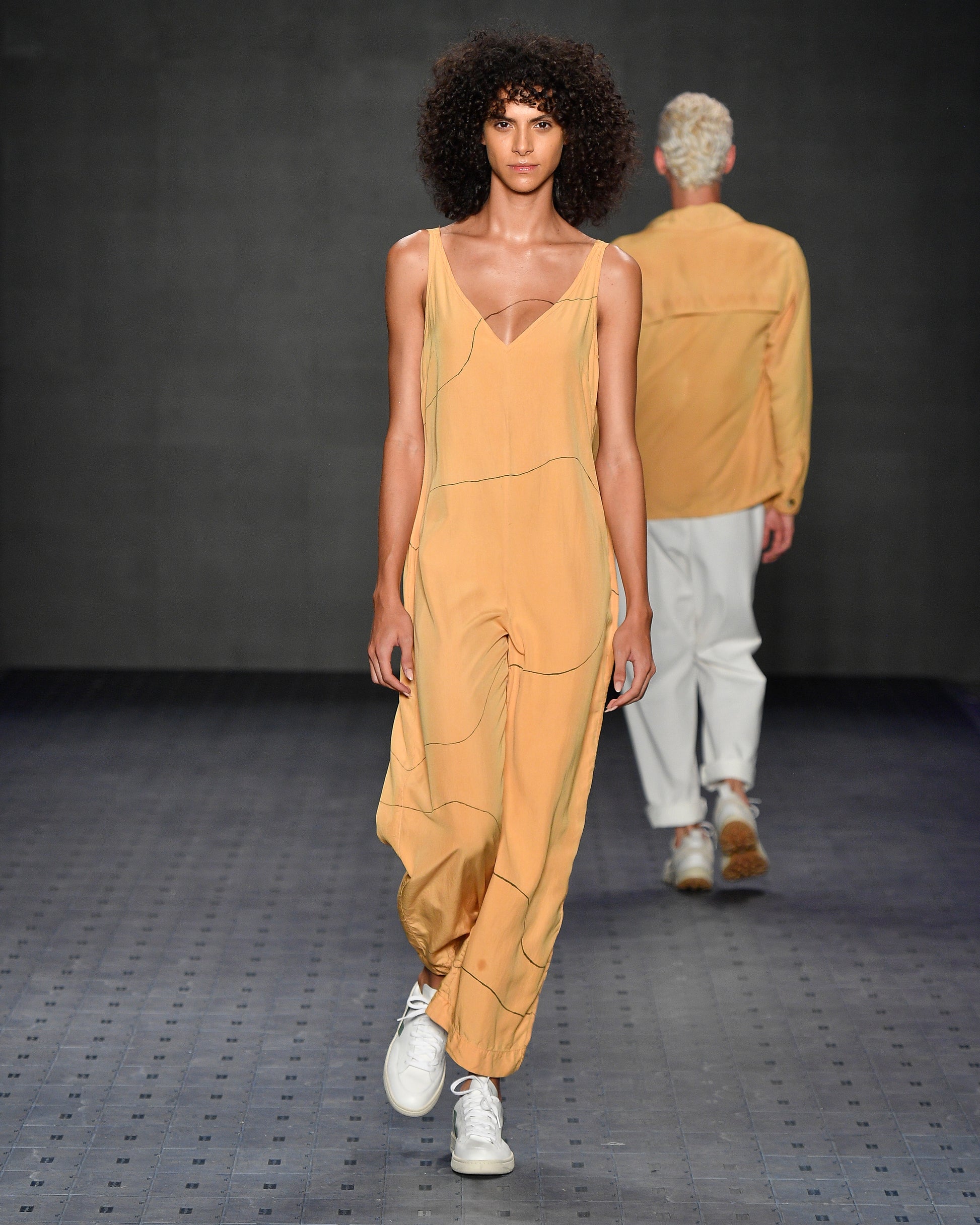 Macacão fluido, leve e soltinho confeccionado em 100% modal sustentável garantindo alto conforto e respirabilidade da pele. De corte reto e com fecho lateral com zíper invisível, possui ainda decote em “V” frontal e dorsal, a peça com modelagem atemporal, garante conforto e elegância para o teu dia a dia. Macacão tingido com cascas de cebola e pintura manual com tinta natural com cascas de barbatimão.