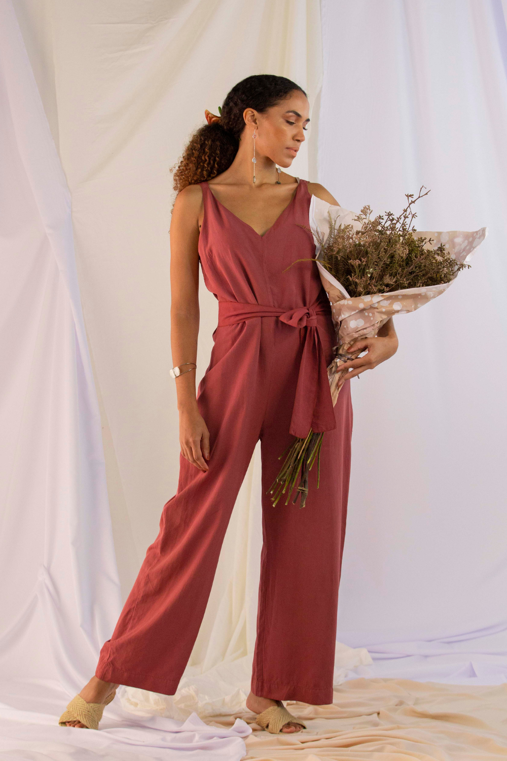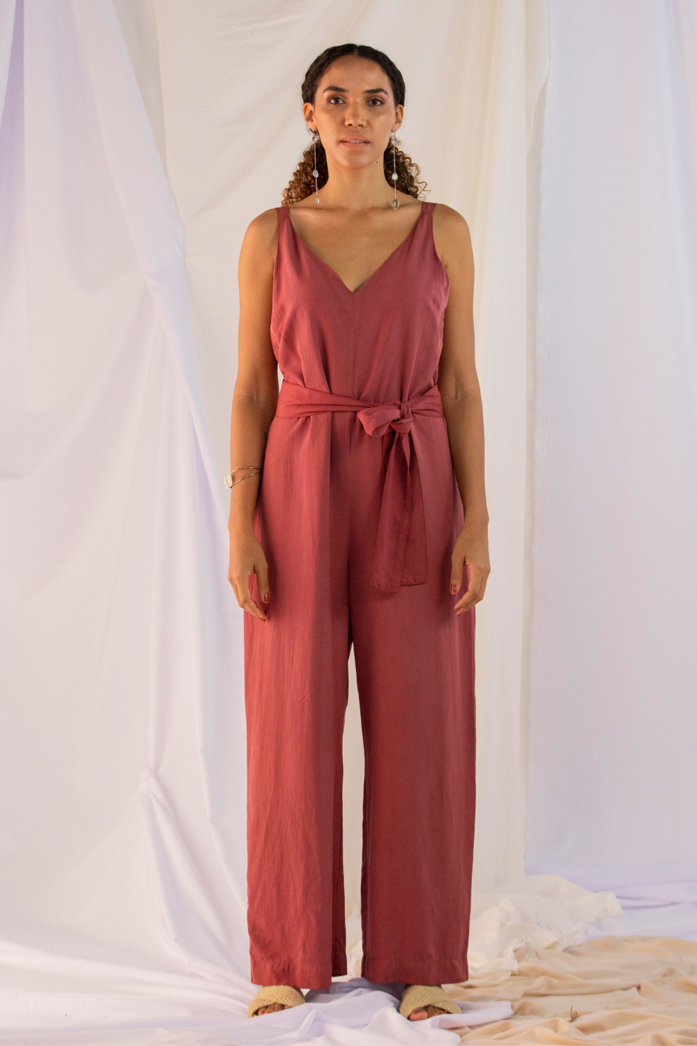 Macacão fluido, leve e soltinho confeccionado em 100% modal sustentável garantindo alto conforto e respirabilidade da pele. De corte reto e com fecho lateral com zíper invisível, possui ainda decote em “V” frontal e dorsal, podendo também ser usado acinturado com a faixa do mesmo tecido.