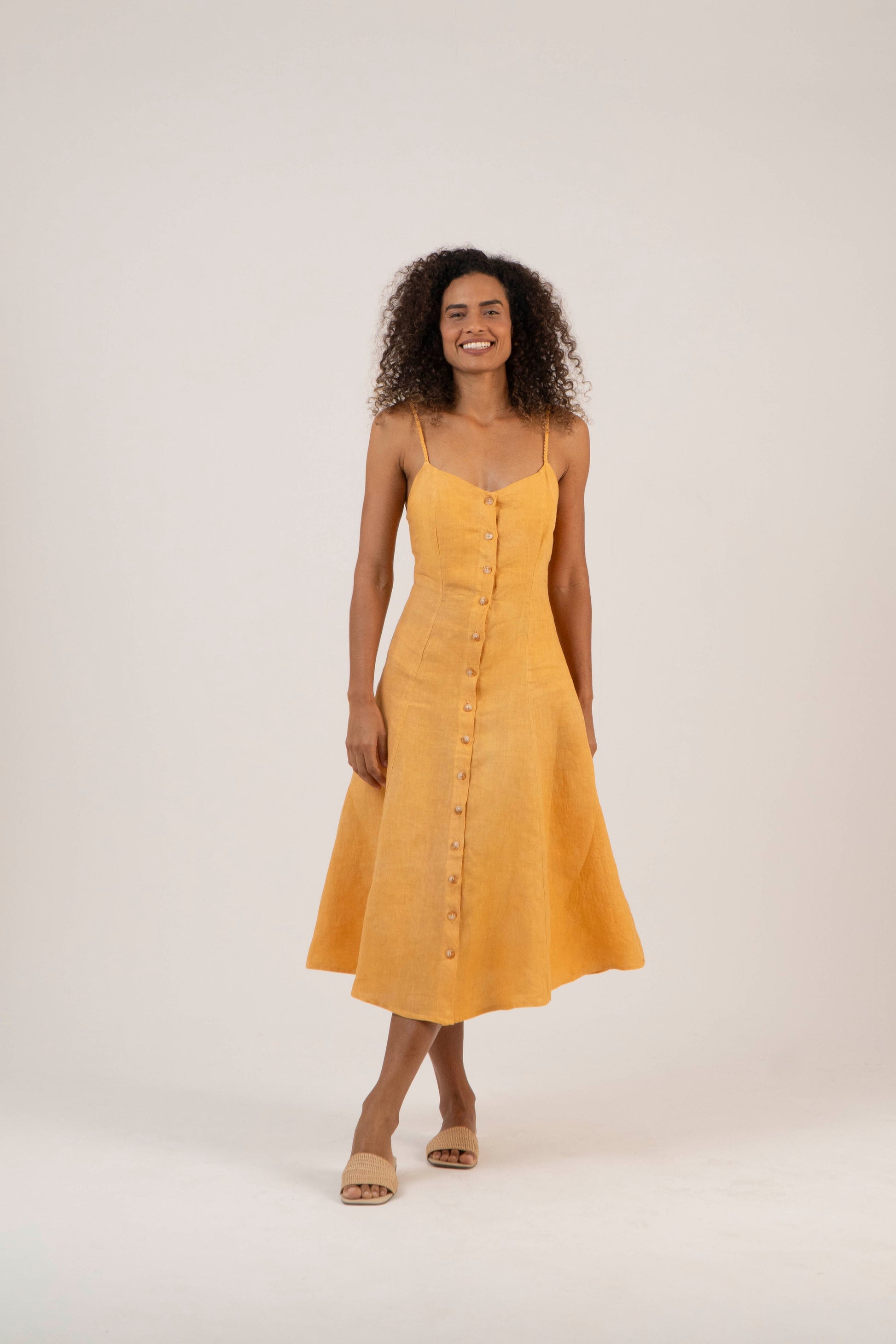 Vestido Midi Iracema Laranja - Linho Orgânico