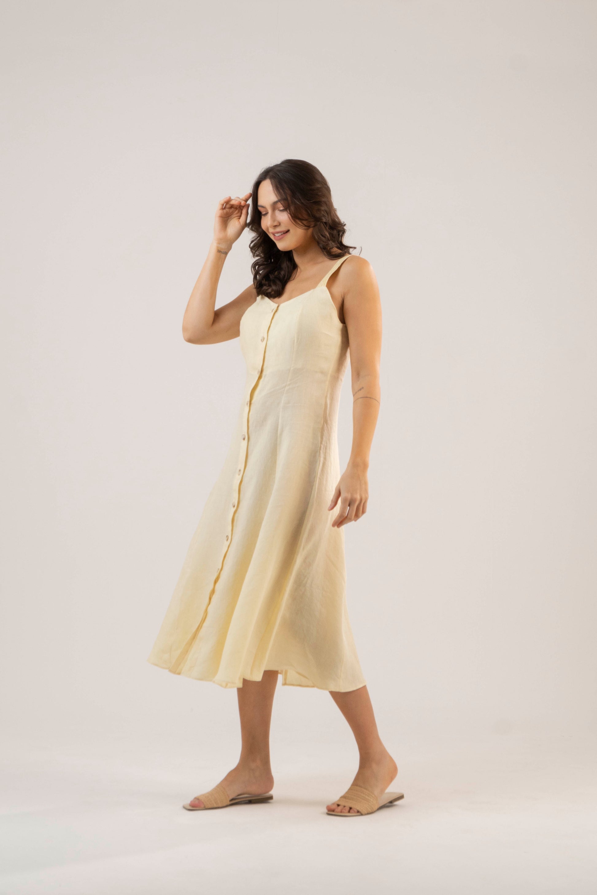 Vestido Midi Yara Amarelo Claro - Linho Orgânico